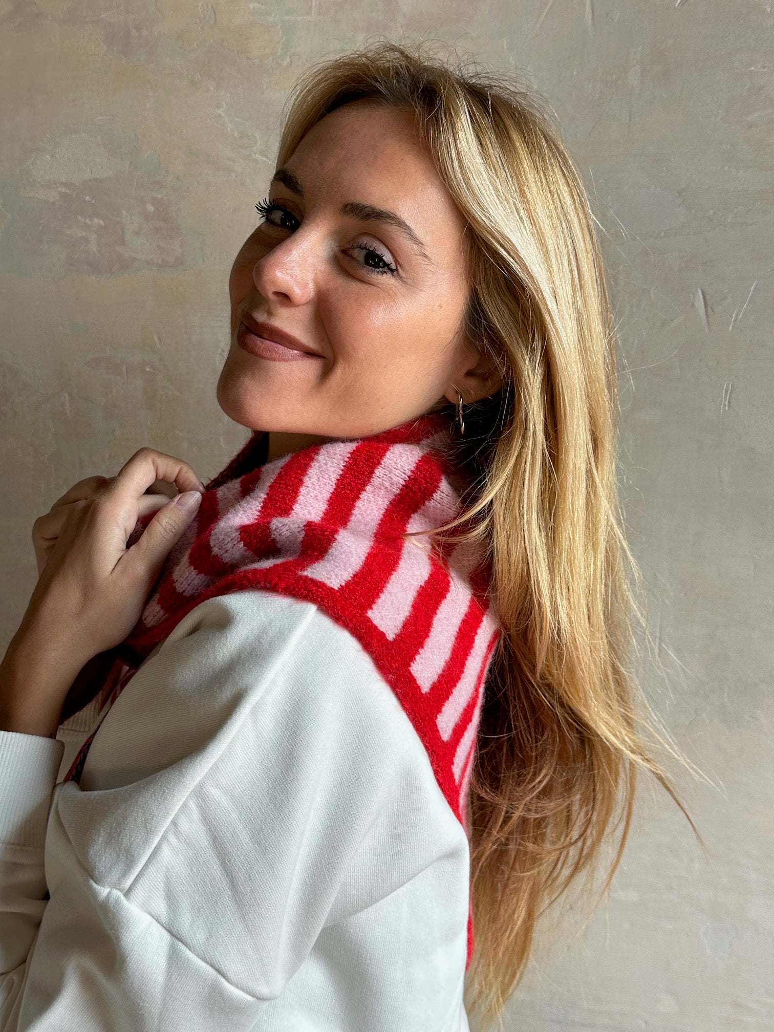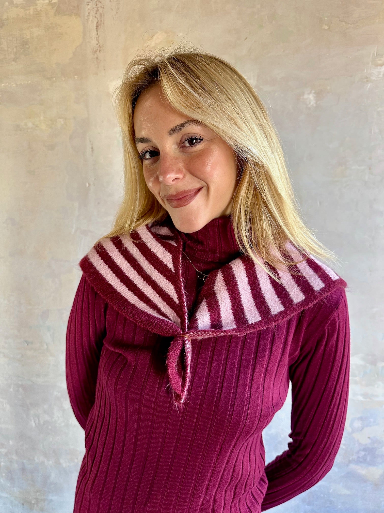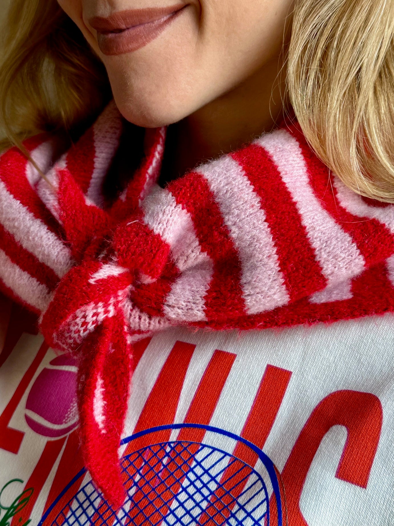 Bandana de diseño triangular confeccionada en mezcla de tejidos.