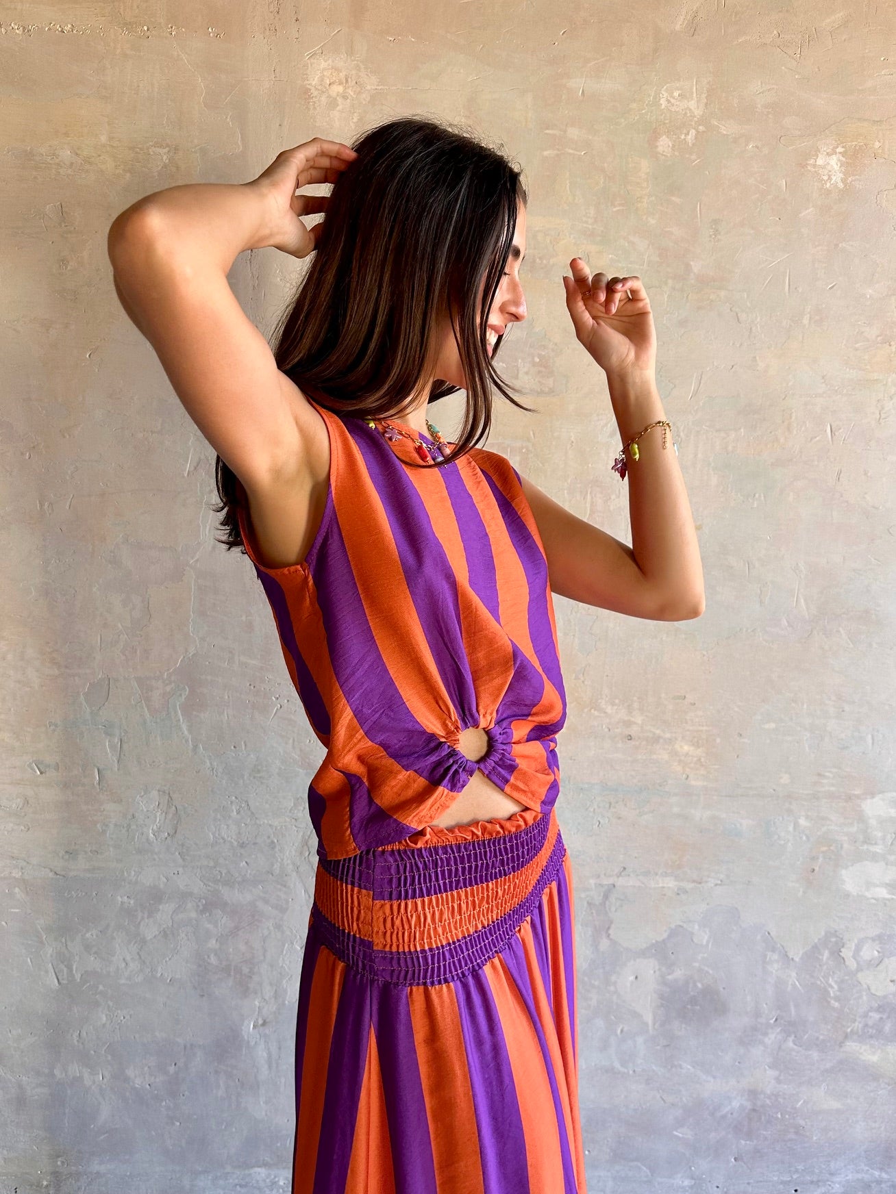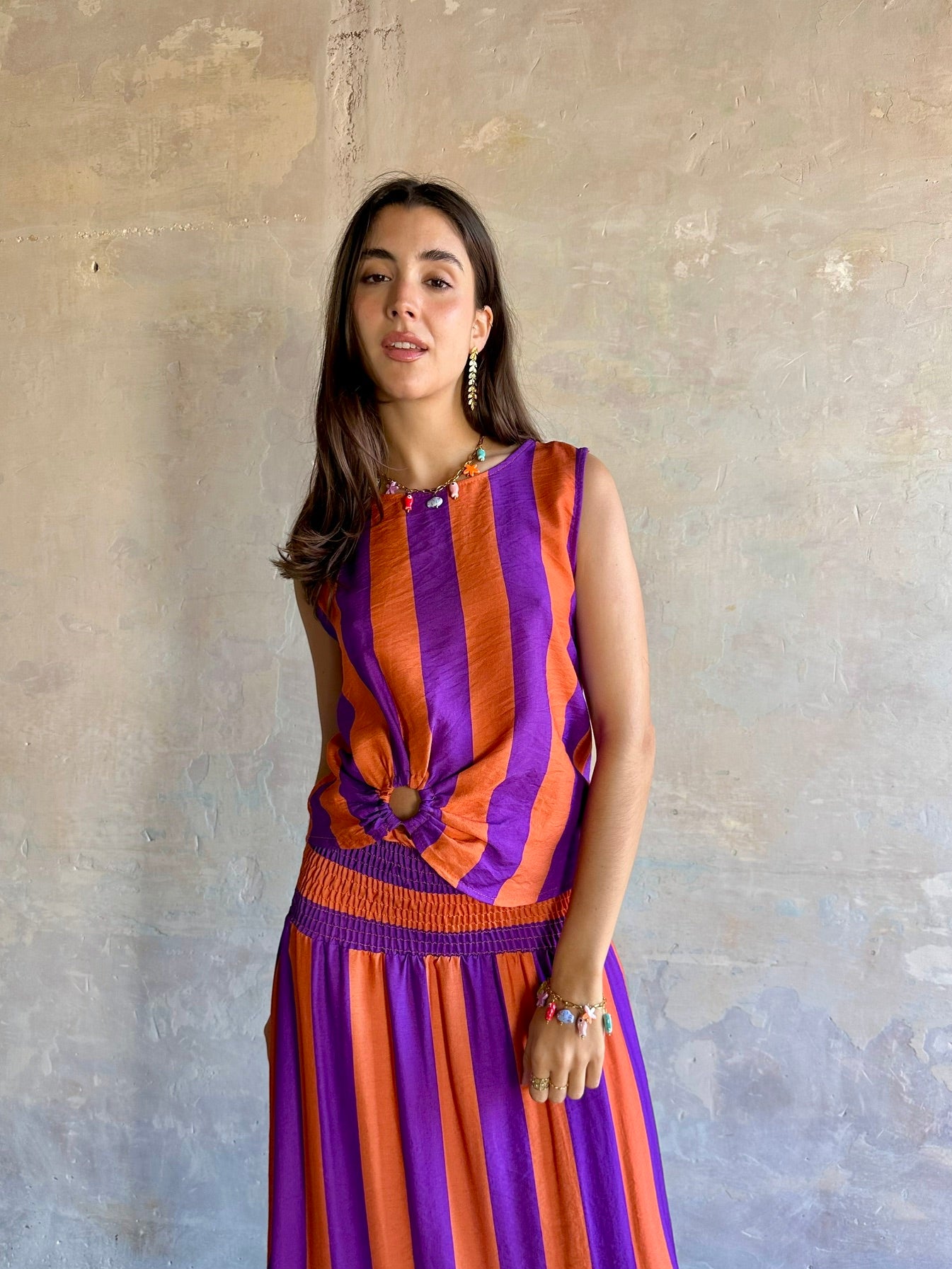 Top de cuello redondo, sin mangas con detalle en la parte delantera.