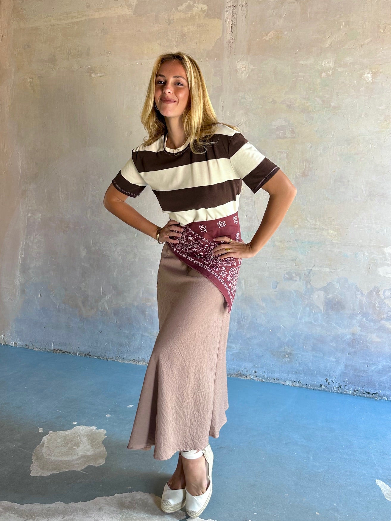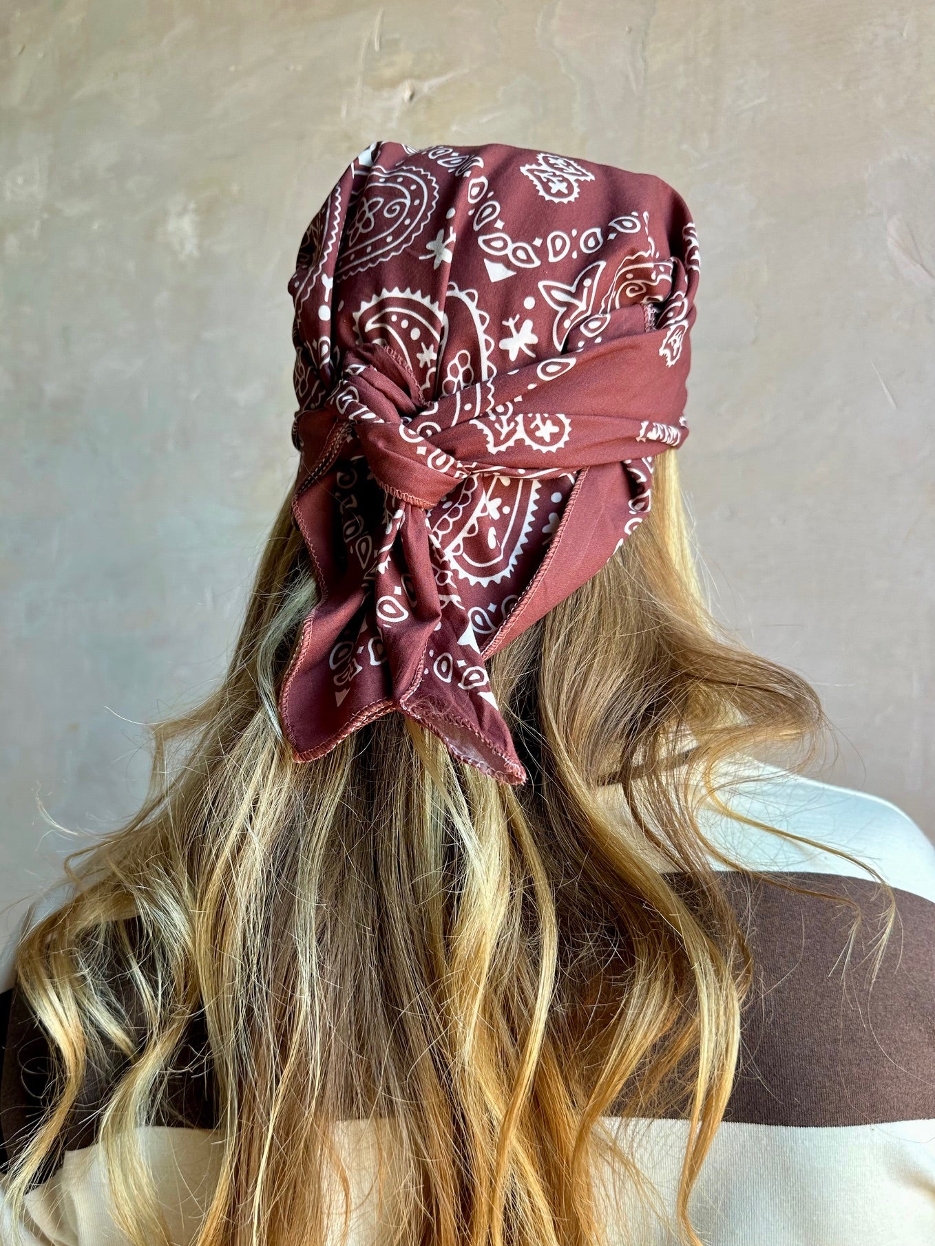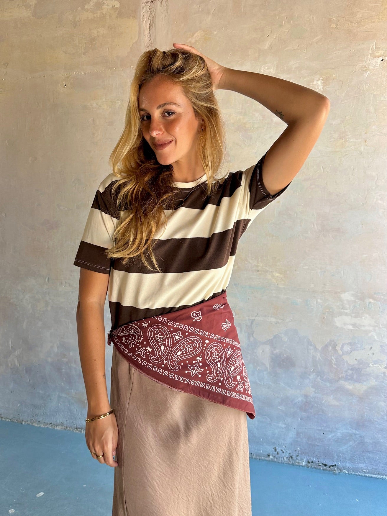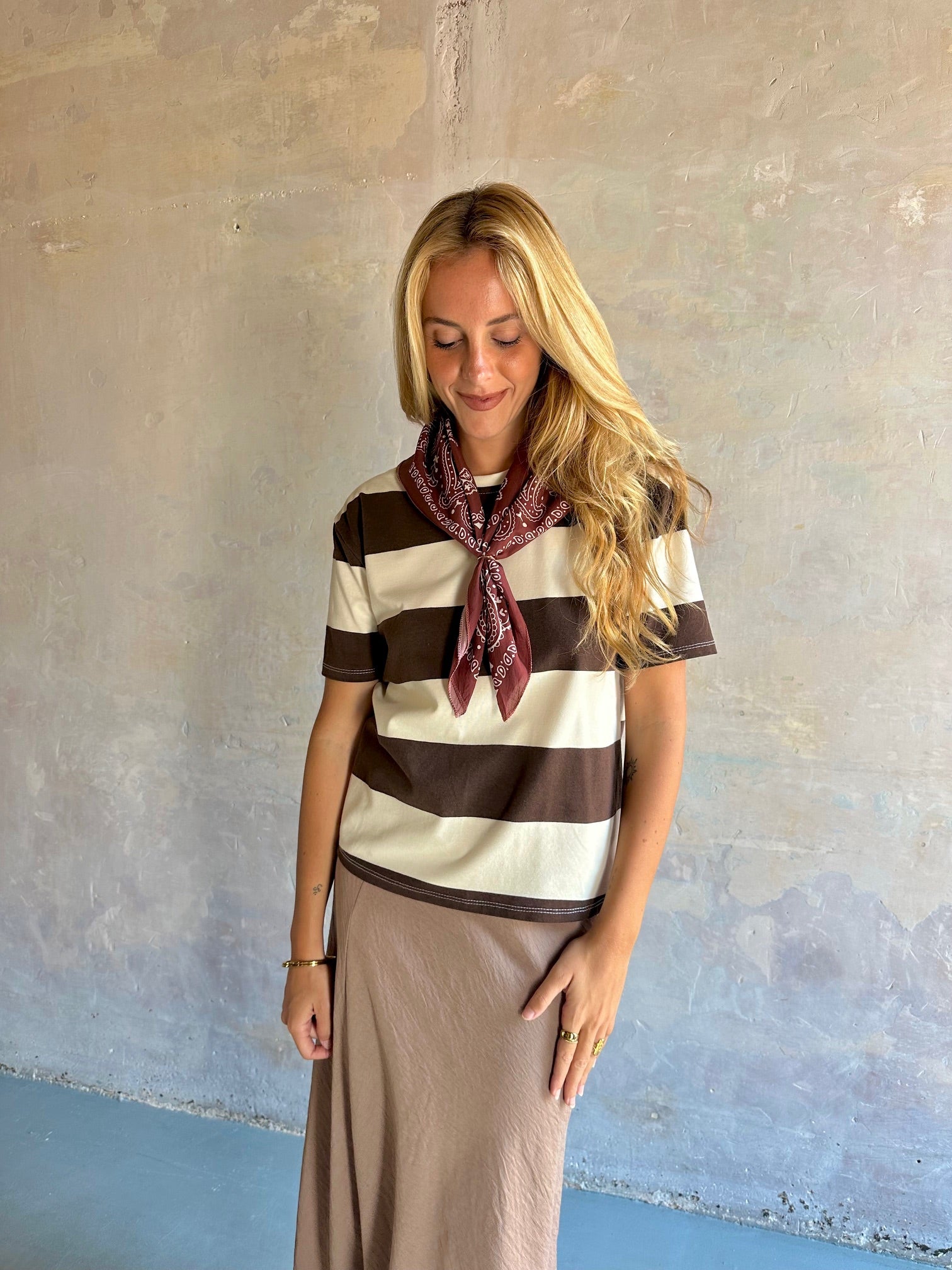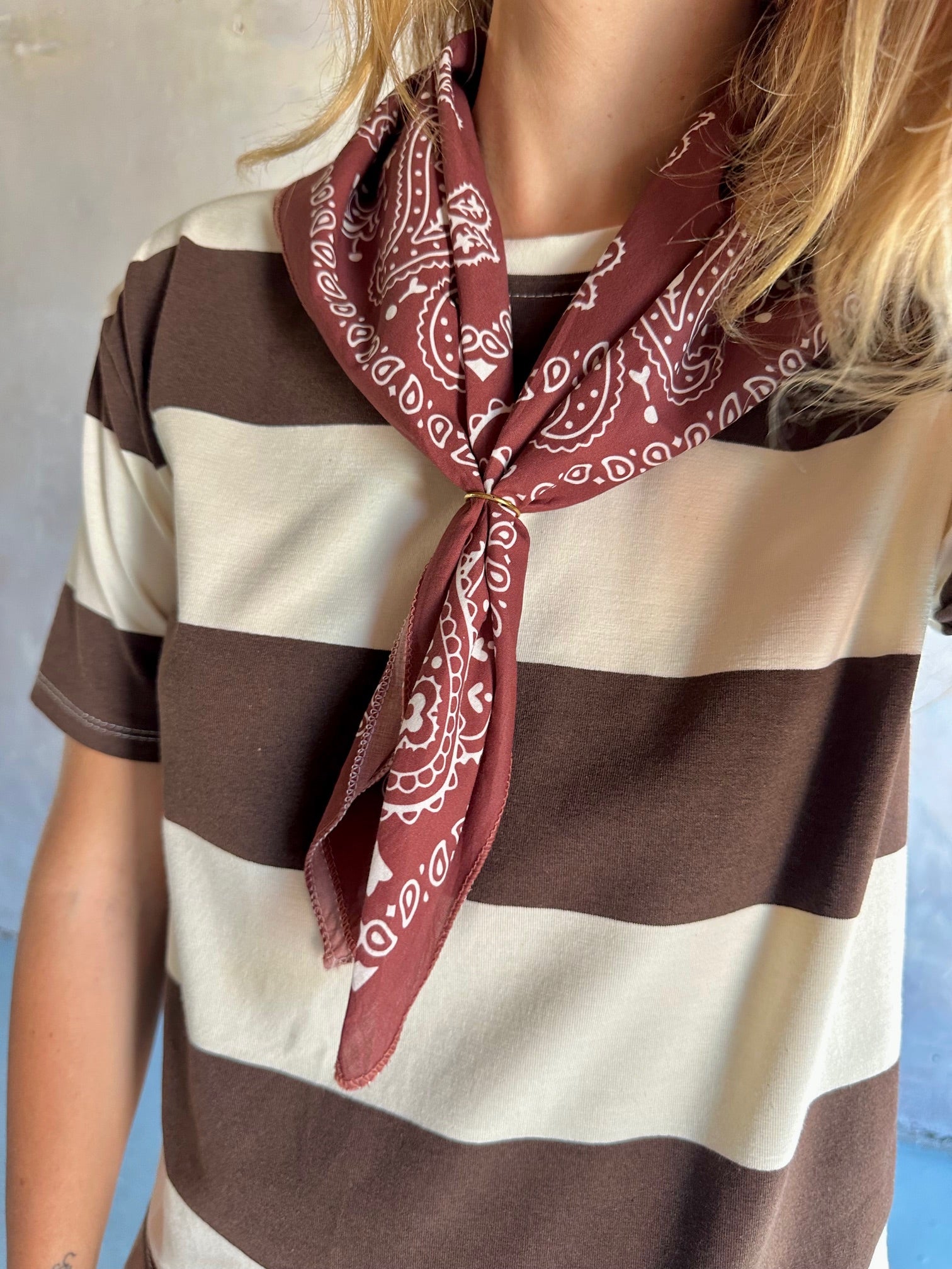 Camiseta de manga corta y cuello redondo. Pañuelo cuadrado con paisley.