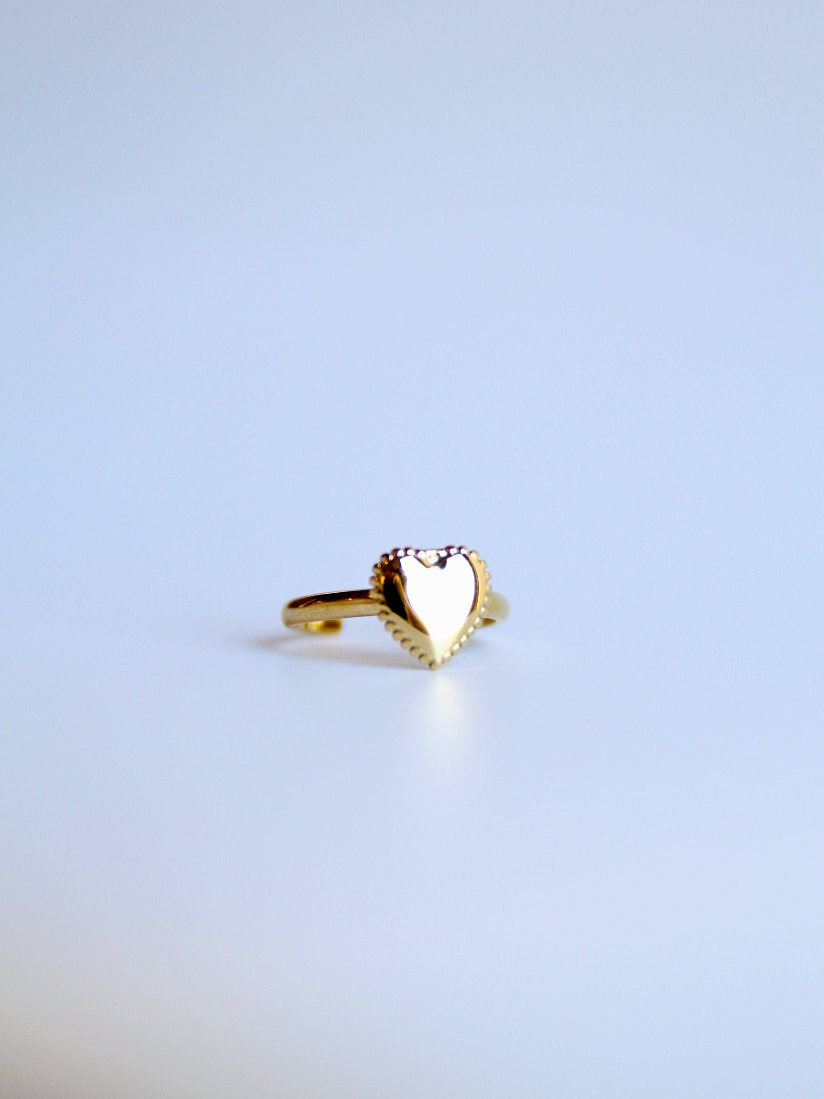 Anillo de acero inoxidable y ajustable con detalle de corazón.
