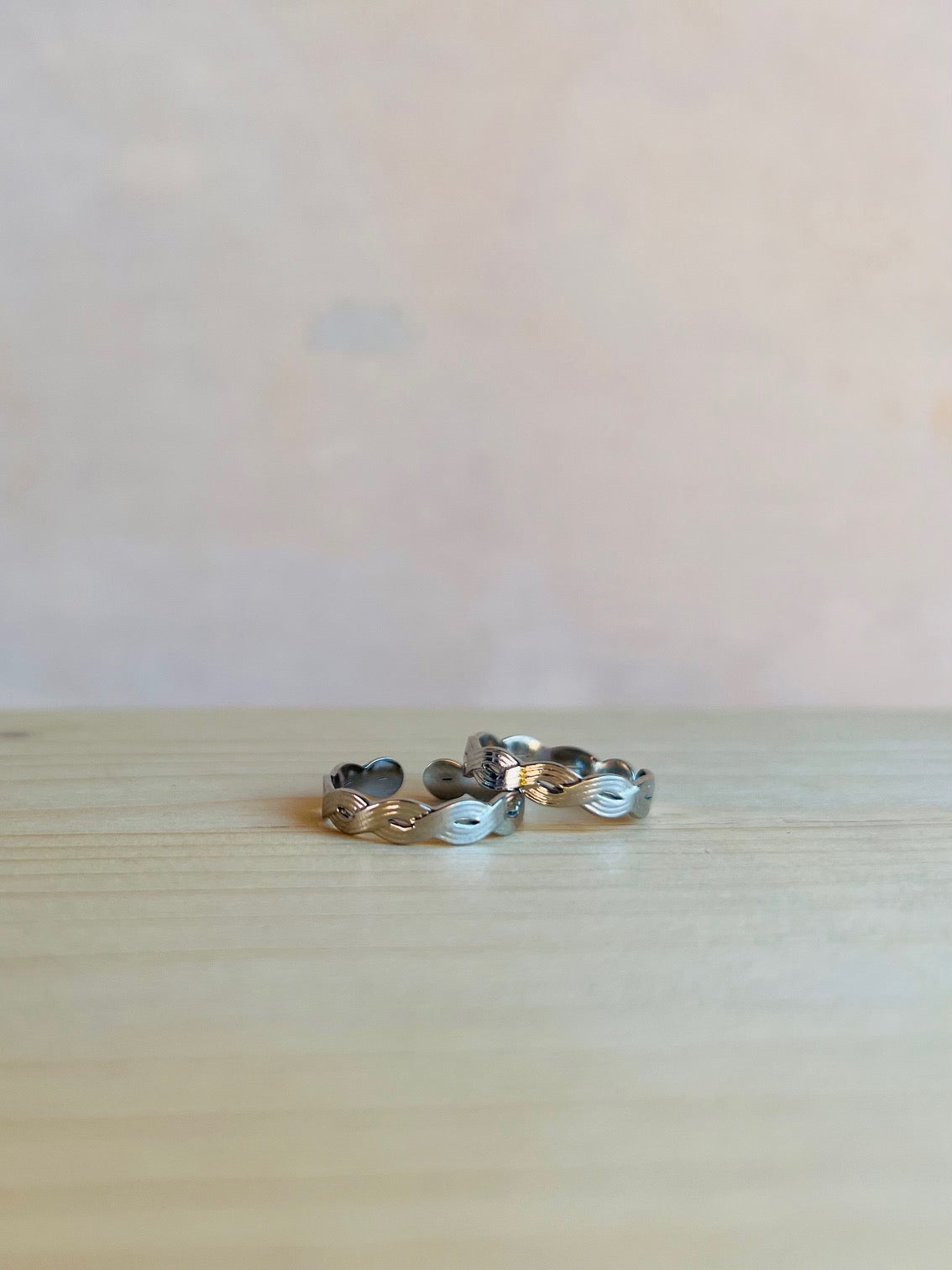 Acero inoxidable quirúrgico en plata, resistente al agua. No contienen metales ni otros elementos que produzcan alergia.