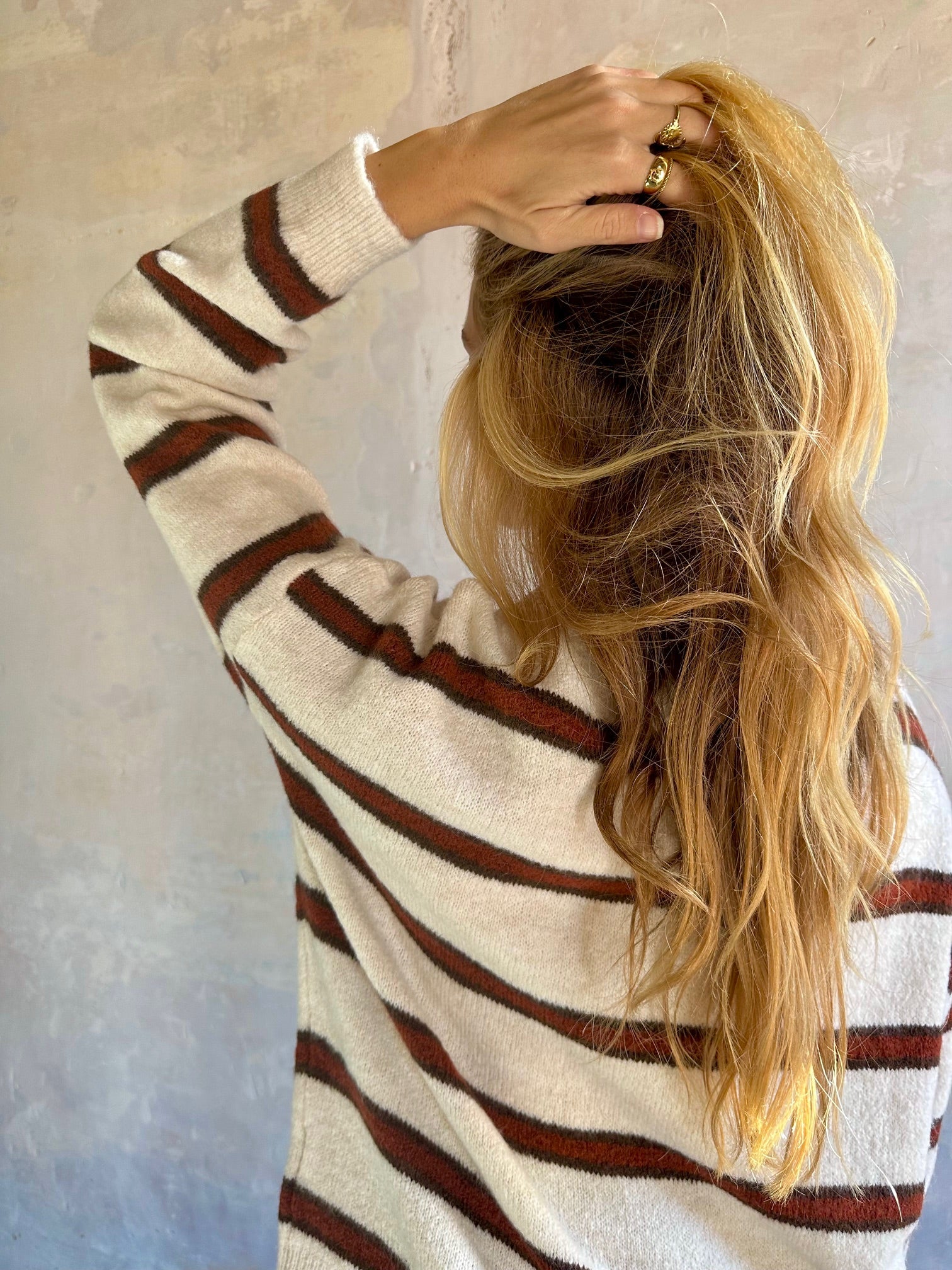 Jersey de cuello redondo y manga larga. Acabados en rib.