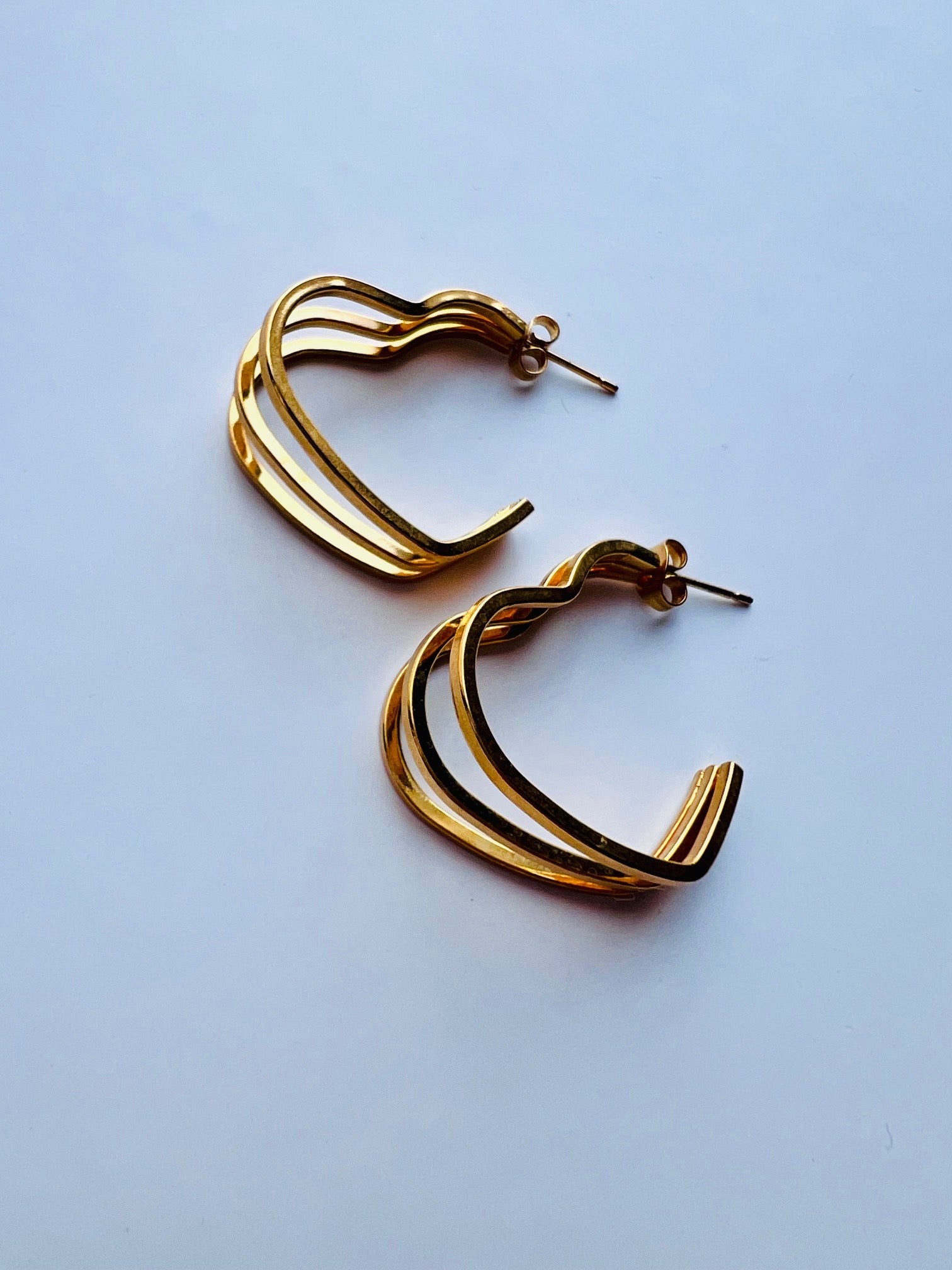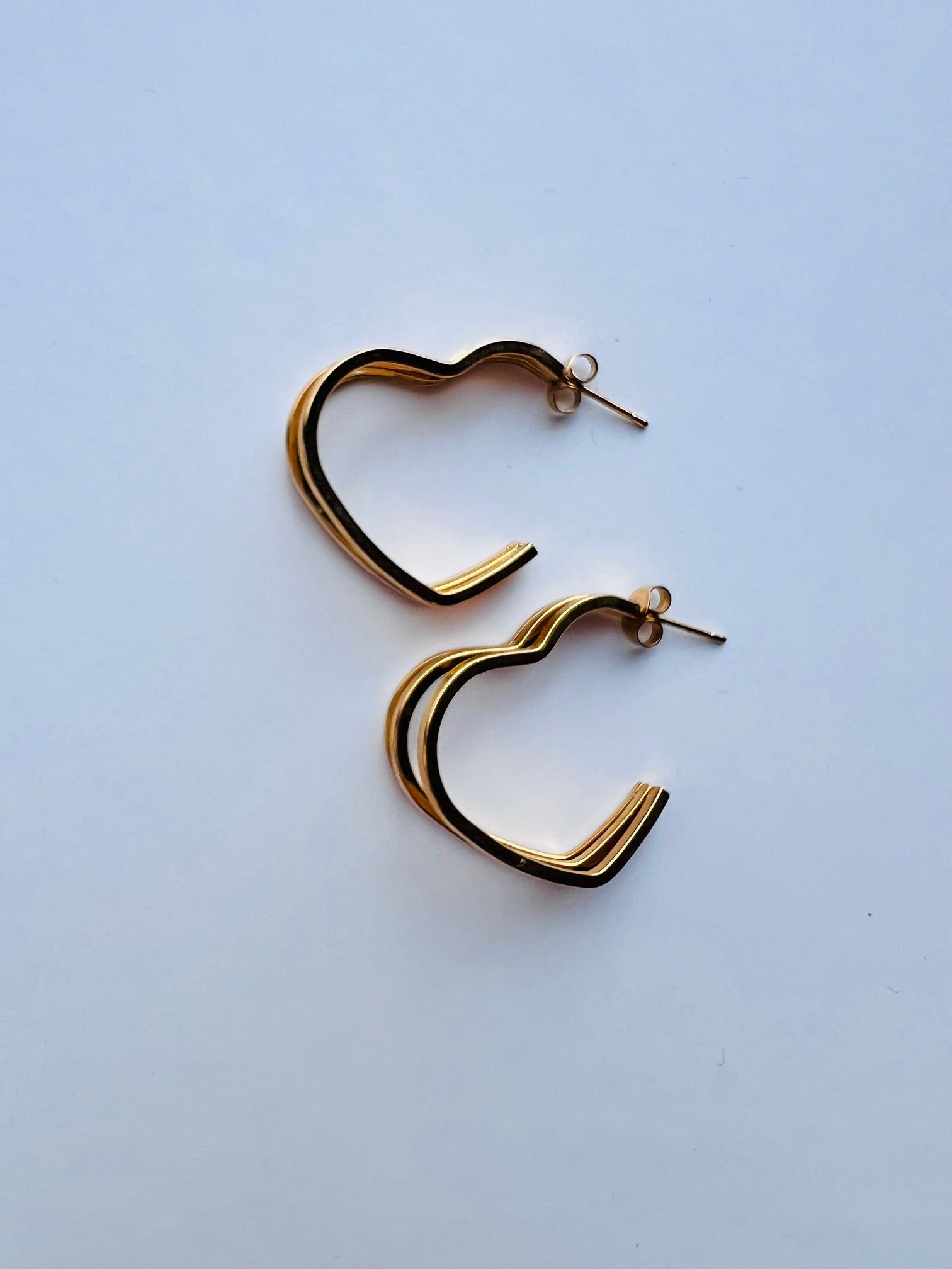 Pendientes con tres siluetas en forma de corazón, unidas entre sí.